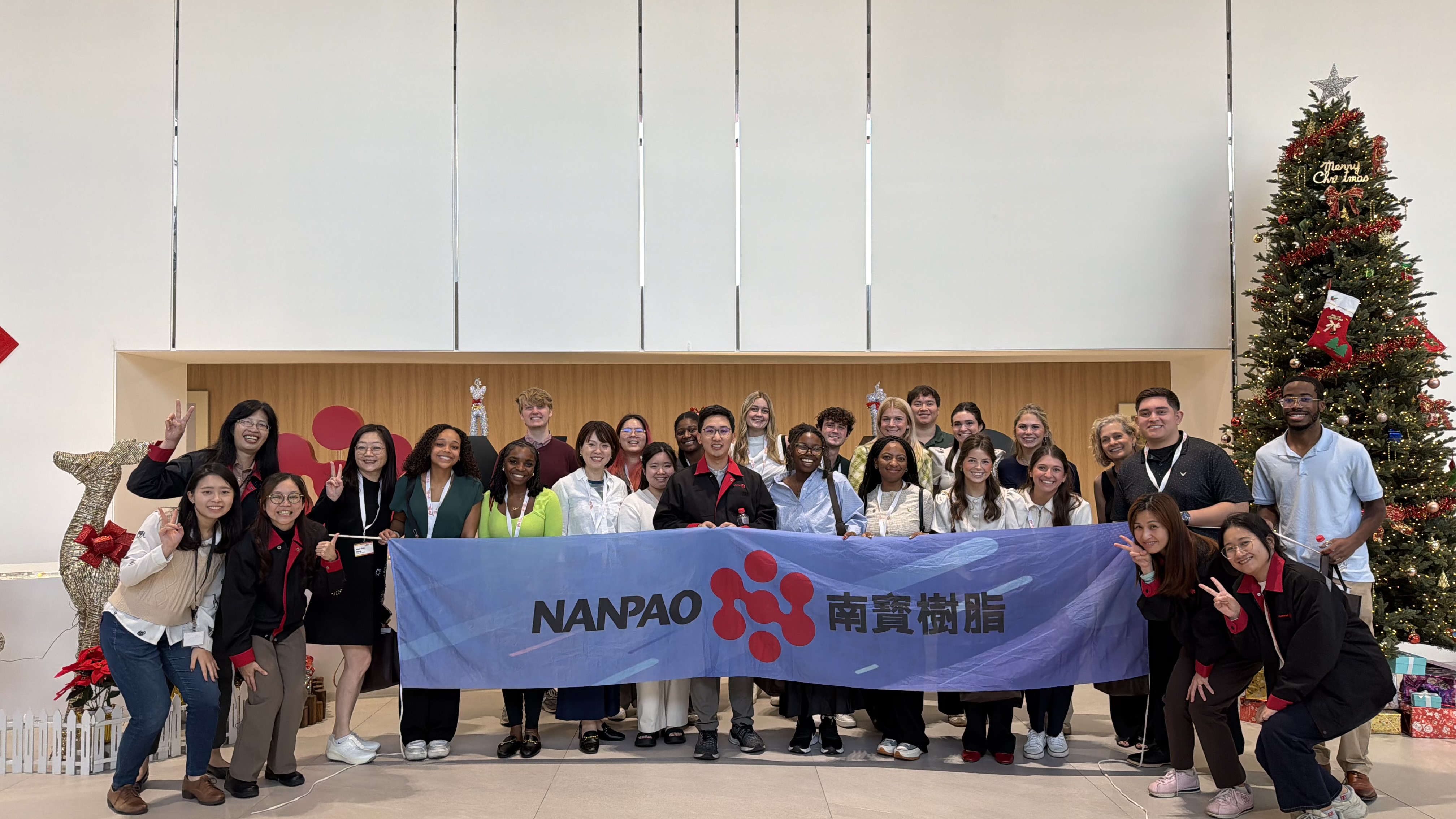 1月5日,南寳樹脂總部接待來自美國路易斯安那州立大學(Louisiana State University, LSU)商學院師生參訪團。該團利用兩週行程走訪台北與台南多家企業,深入了解台灣優質企業的營運模式與風險管理實務,此行特別選擇南寳樹脂,關注我們如何從傳統產業,轉型為具備數位化能力與健全ESG治理架構的國際企業。