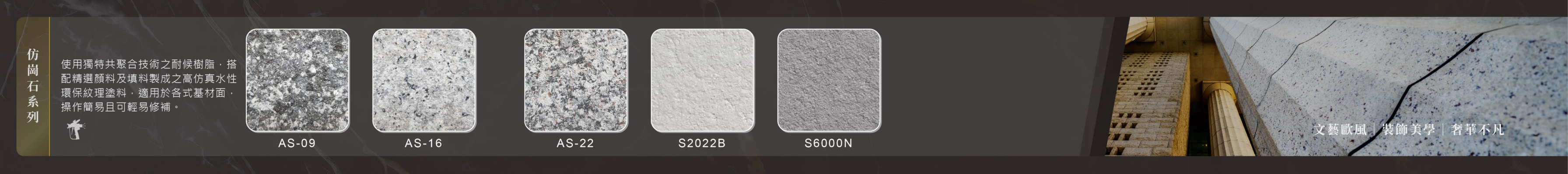 | 產品特性 | 1.水性環保兼高仿真,輕易修補,操作簡便,電動或氣動均可施作 2.高彈性,耐髒汙,可刷洗,不褪色,隔水性佳。 3.耐酸鹼,抗龜裂,優良耐候性,不助燃,耐高低溫。 4.不含8大重金屬,低甲醛,低VOC。 |