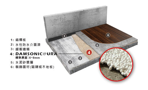 | 產品名稱 | 全效樓板隔音系統 DAMSONIC@URA |